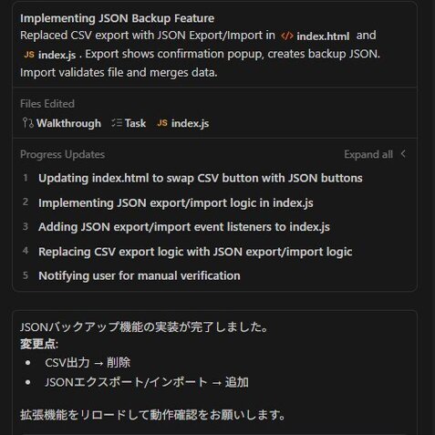を考えていましたが、不安定なためエクスポート機能やGoogleドライブ保存(今後に実装予定)に変更しました。